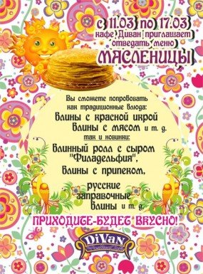 Кафе «DiVan» приглашает отведать меню Масленицы.