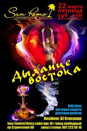 Вечер Пятницы мы встречаем вечеринкой «Дыхание востока» - экзотическими танцами, восточными сладостями, дегустацией новых ароматов.