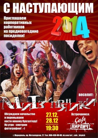 Мы работаем весь год! А когда же отдыхать? Арт-кафе "Кирпич" приглашает корпоративных работников на предновогодние посиделки!