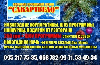 Ресторан грузинской кухни «Сакартвело» приглашает Вас на празднование Нового года.