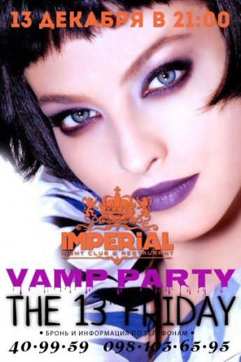 Желающие могут одеть карнавальные костюмчики, вставить зубки и одеть рожки. Черные плащи, пушистые хвостики и вываливающиеся глазки приветствуются! Дополнительной энергетики придаст черная, при черная шоу-программа. Давайте выберем вместе принцесу ночи - девушку Вамп.