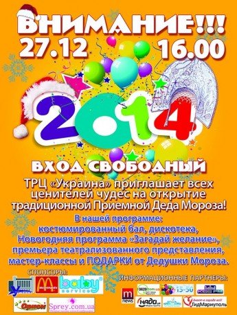 Мы вместе с Вами откроем традиционную "Приемную Деда Мороза". Праздник начнется на 4-м этаже ТРЦ "Украина".
