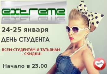 Приглашаем отметить День студента, ну и конечно же всех Татьян и их друзей. Праздничная атмосфера, радушие нашего персонала, шоу программа.