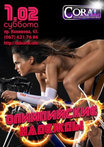 Так что, вечеринка "Олимпийские надежды" обещает быть спортивной. Тем более, что, накануне Олимпиады 2014 нашим спортсменам очень нужна поддержка. В эту ночь будь в форме, будь в Коралле!