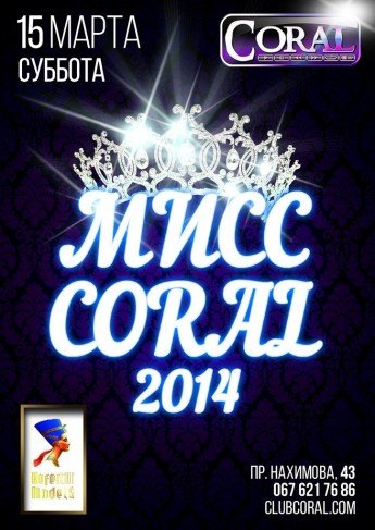 15 марта - развлекательный комплекс Coral и модельное агенство Nefertiti Models представляет самую роскошную вечеринку- конкурс красоты "Мисс Coral 2014"!