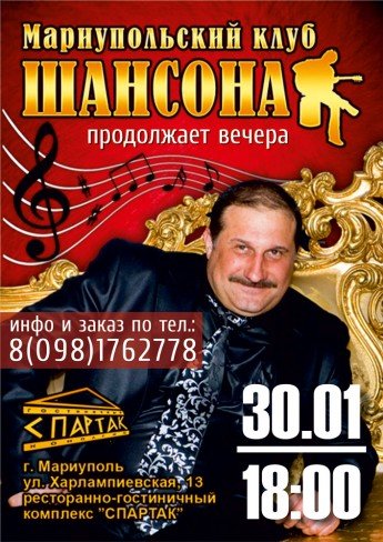 В гостиничном комплексе СПАРТАК пройдет Вечер шансона с ведущим Владимиром Бажиновским!