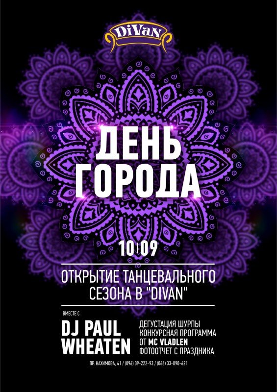 Вместе с вами открываем танцевальный сезон в "DiVan" с DJ Paul Wheaten (oriental house set), также будет: