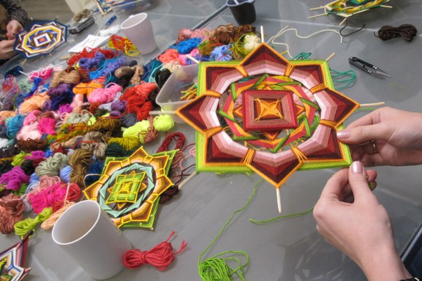 Плетение волшебных детских мандал из ярких ниток