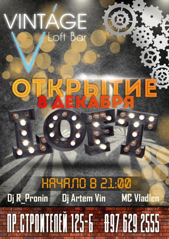 Сенсация В эту пятницу! Открытие LOFT BAR VINTAGE. Новый интерьер, оригинальный стиль и много сюрпризов, которые Вас порадуют. Приходите, Вас ждет незабываемая атмосфера.