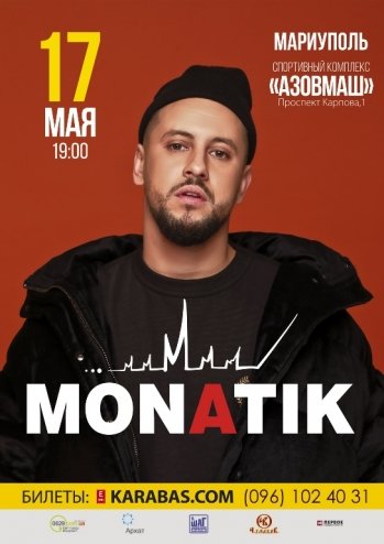 Концерт MONATIK в Мариуполе состоится 17 мая 2018 г, 19:00, БК Азовмаш.