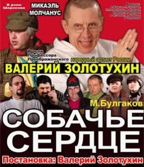 Знаменитое произведение Михаила Булгакова "Собачье сердце", оживляющее в новом видении известного московского актера и режиссера Валерия Золотухина, поражает своей актуальностью и в сегодняшнее время. История трансформации бездомного пса в простофилю Полиграфа Полиграфовича предоставлена в новой оригинальной интерпретации с использованием экспрессивных диалогов, остроумных шуток, оригинальных театральных трюков.