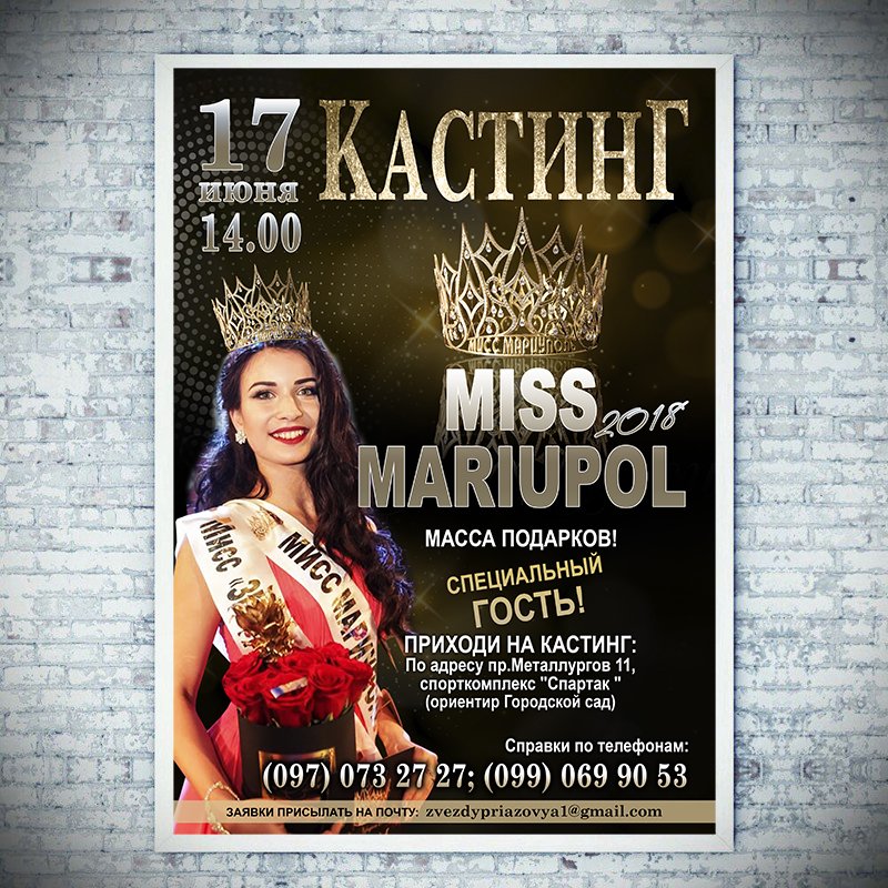 Не пропусти! Приходи на кастинг, для участия в Ежегодном городском конкурсе " Мисс Мариуполь 2018"