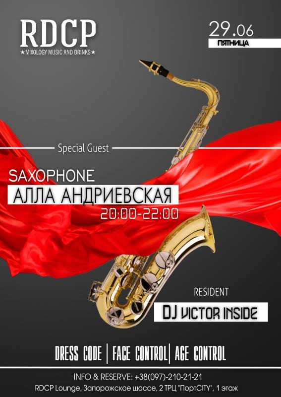 Если Ваше сердце замирает от звуков саксофона, Вы поклонник живой музыки или Вам просто хочется отдохнуть и расслабиться, то этот вечер именно для Вас!