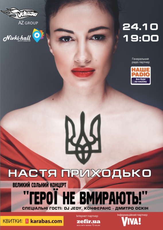 В суботу, 7 жовтня 2017 року на сцені клубу Atlas (Київ, вул. Січових Стрільців, 37-41) відбудеться презентація нової концертної програми Анастасії Приходько – КРИЛА.