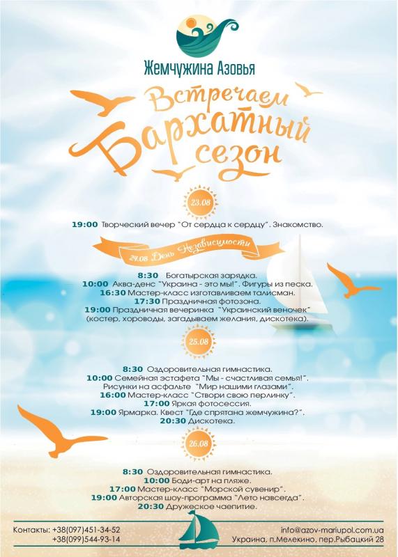 ЦО Жемчужина Азовья объявляет об открытии Бархатного Сезона! И приглашает всех хорошо отдохнуть и отметить День Независимости вместе с нами!