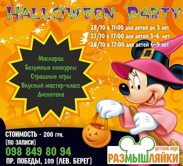 ТРЕПЕЩИТЕ, ДЕТКИ! Вас ждет страшно-веселый праздник, вечеринка ведьм, монстров и мутантов! Halloween Party 2018 в детском клубе "Размышляйки" ! В программе: Костюмированная вечеринка Безумные конкурсы Страшные игры Вкусный тематический мастер-класс Адская дискотека