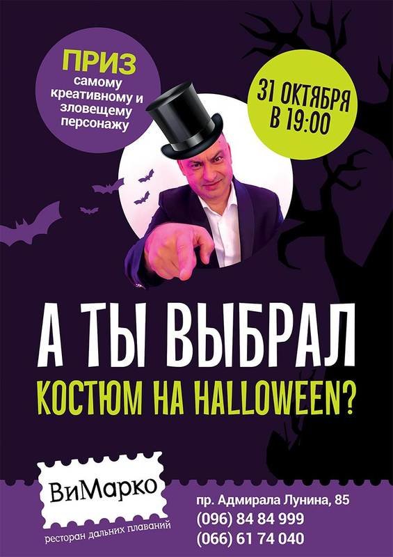 31 октября в ресторане ВиМарко Великий и ужасный Аскольд Квятковский сотрёт грани между реальностью и мистикой. Кошмарно веселый вечер ждёт каждого, кто станет нашим гостем и не побоится раскрыть свою темную сторону.