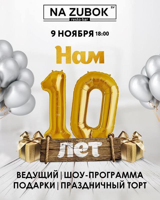 Приглашаем отпраздновать вместе с нами 10-ти летие Resto-bar Na Zubok!