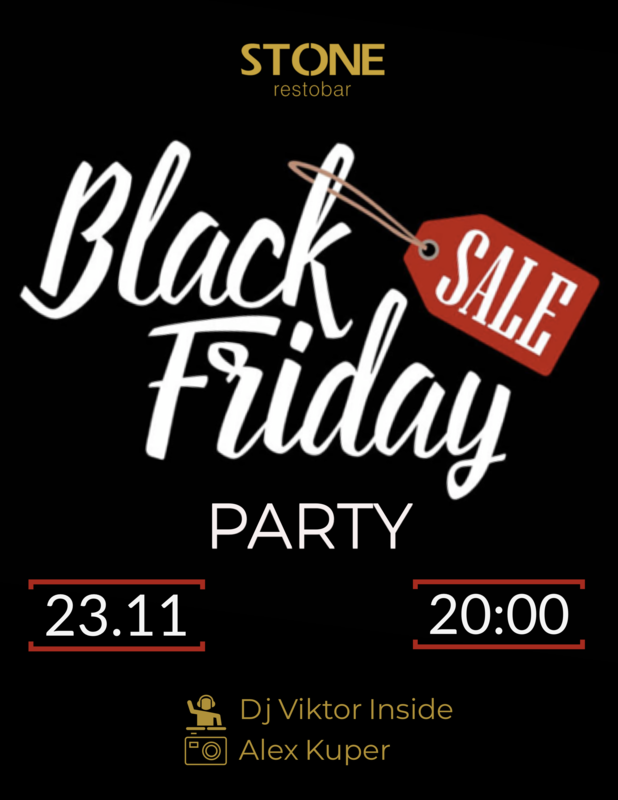 Stone Restobar приглашает на вечеринку Black Friday Party в день всемирного шопинга. Вас ждет фотозона вместе с фотографом Alex Kuper. А так же Dj Viktor Inside.