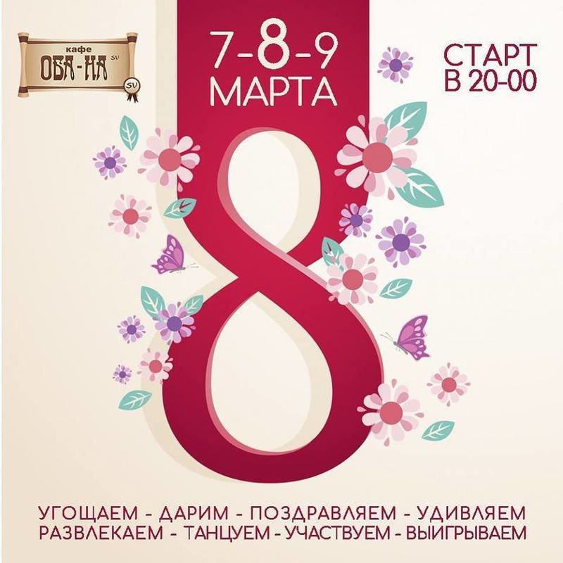 В честь самого красивого праздника в году, мы приготовили для гостей весёлую программу на целый уикенд, 7,8,9 Марта.