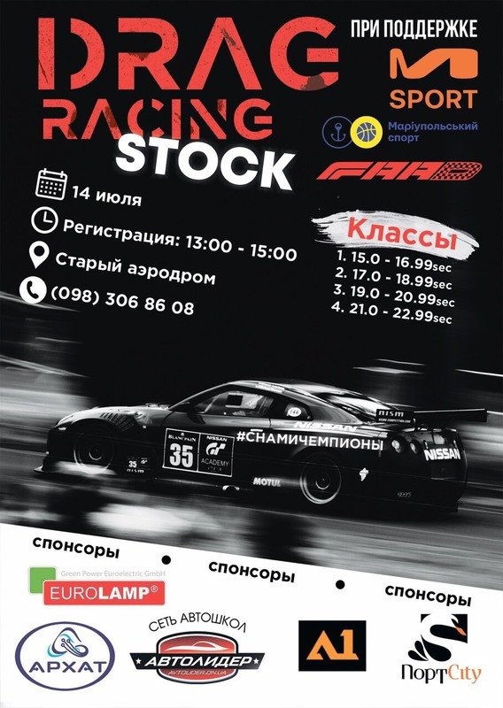 14 июля на трассе Старого Аэродрома города Мариуполь все автомобили станут равны. Не важен объём степень доработки авто. Важно лишь чувствовать свой автомобиль и быстро реагировать на сигнал светофора.