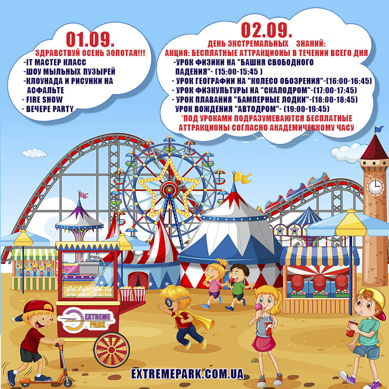 *Под уроками подразумеваются бесплатные аттракционы согласно академического часа.