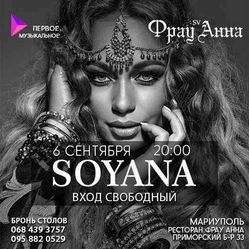 Сейчас девушка выступает под именем SOYANA и 6 сентября посетит Мариуполь где выступит в ресторане ФРАУ АННА!