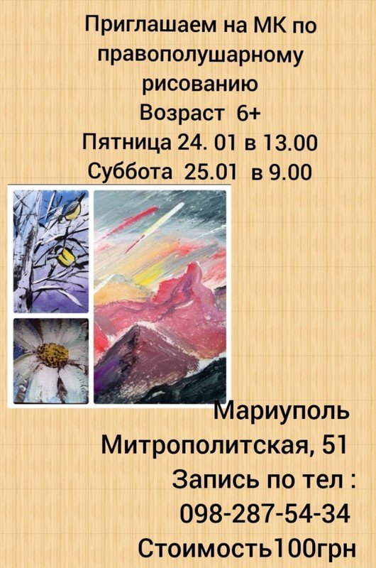 Приглашаем Вас на мастер класс по правополушарному рисованию.