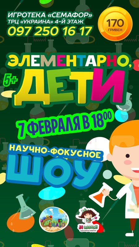 "Элементарно, дети" Шоу, которое познакомит детей с новым и интересным миром физических явлений ️и увлекательных фокусов.