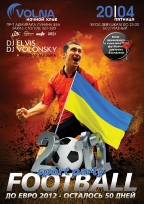 Приглашаем вас весело и беззаботно провести время. Тема вечеринки - футбол. В этом году в Украине пройдем мировой турнир по этому виду спорта - ЕВРО 2012.