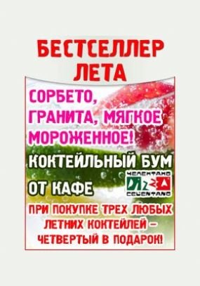 Кафе «Пицца Челентано» в центре города представляет новинку - морозную свежесть фруктовых десертов – «сорбето», «гранита», мягкого фруктового мороженного! Выбери свою сладкую мечту о прохладе!
