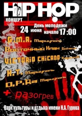 Молодежка комбината имени Ильича приглашает всех желающих присоединится к празднованию Дню молодежи в парке культуры и отдыха имени Н. А. Гурова. Вас ожидает Hip-Hop концерт.