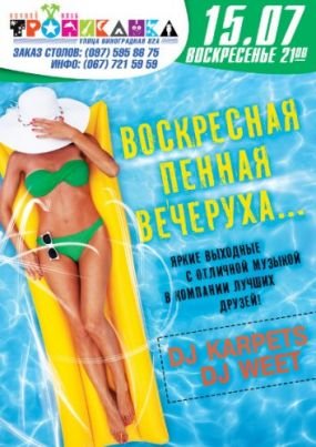 Уже в это воскресенье мы будем все также стирать свою одежду в потоке пены,кидаться в друг друга ею... Готовим свои купальники,берем:тазики,мочалки,полотенца и конечно же себя любимого и все гоу к нам! Продолжаем массовую стирку и купание в потоке пены под танцевальную музычку резидентов: