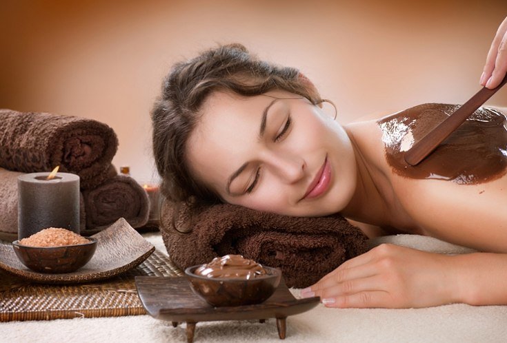 В чем польза шоколадного обертывания . Секрет успеха заключен в полезных свойствах самого шоколада. В нем содержится провитамин А, витамины РР, В1 и В2. Также в шоколаде есть много микроэлементов: магний, кальций, железо, натрий, калий, фитостерины, фенилэтиламин, теобромин и растительные протеины. Эти полезные вещества, которые содержатся в шоколаде, способствуют приливу сил и бодрости, вызывают чувство счастья и повышают настроение. Шоколад нормализует кровяное давление, укрепляет иммунитет и помогает бороться с простудой. Шоколад усиливает выработку гормонов у женщин, которые вызывают возбуждение. Шоколадное обертывание хорошо влияет на весь организм и на кожу. Она увлажняется, становится бархатистой и эластичной, становится бронзовой и очищается. Исчезает угревая сыпь и пигментные пятна. Шоколад ускоряет расщепление жиров за счет того, что содержит до 40% кофеина. Это помогает бороться с лишним весом и целлюлитом. Читай также: Какие экзотические процедуры проводят в СПА-салонах Процедура шоколадного обертывания также хорошо поднимает настроение и помогает побороть депрессию, успокаивает нервы и помогает отвлечься от проблем. А все – благодаря прекрасному аромату и вкусу шоколада.
