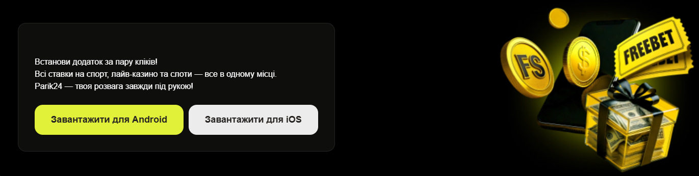 Хоч мобільна версія сайту і дозволяє грати в казино на гривні, вона часто програє в стабільності та зручності. Додаток, як-от від Parik 24, працює стабільніше, швидше завантажує casino контент і не потребує кожного разу вводити логін і пароль.