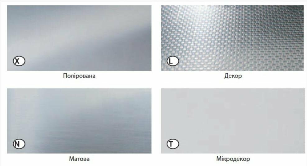 - Поліроване – блискуче, естетично привабливе, але потребує ретельного догляду.