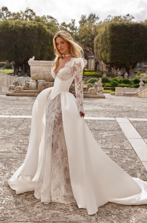 Паралельно з цим у колекціях є не менш вражаючі весільні сукні, що поєднують розкіш, легкість і технологічність пошиття. Вони створені так, щоб наречена отримала максимум комфорту, не втрачаючи елегантності та ефектності кожного кроку.