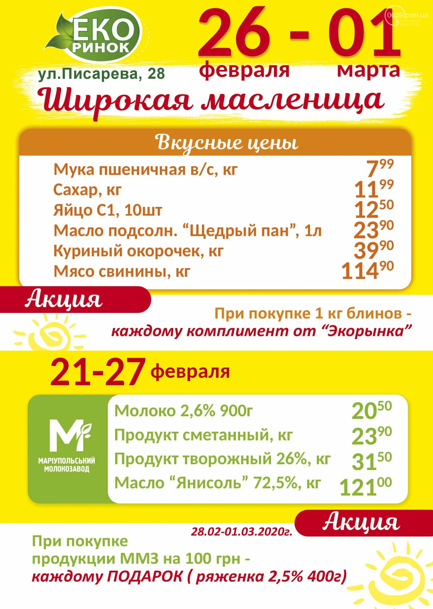 Також до 1 березня на вас чекають вигідні ціни на продукцію "Маріупольського молокозаводу":