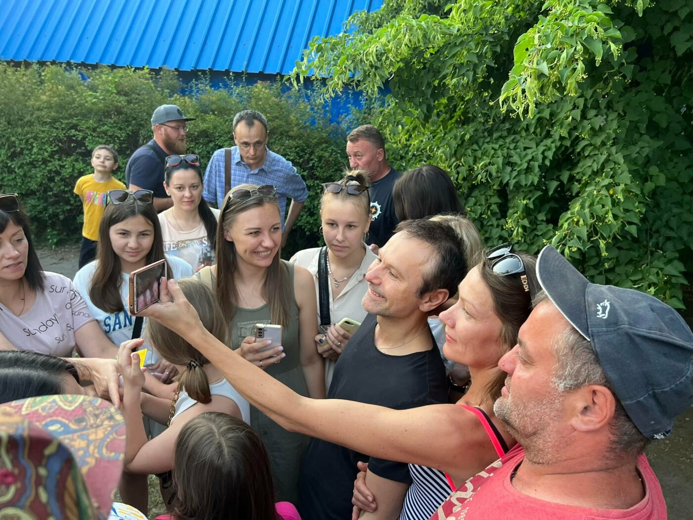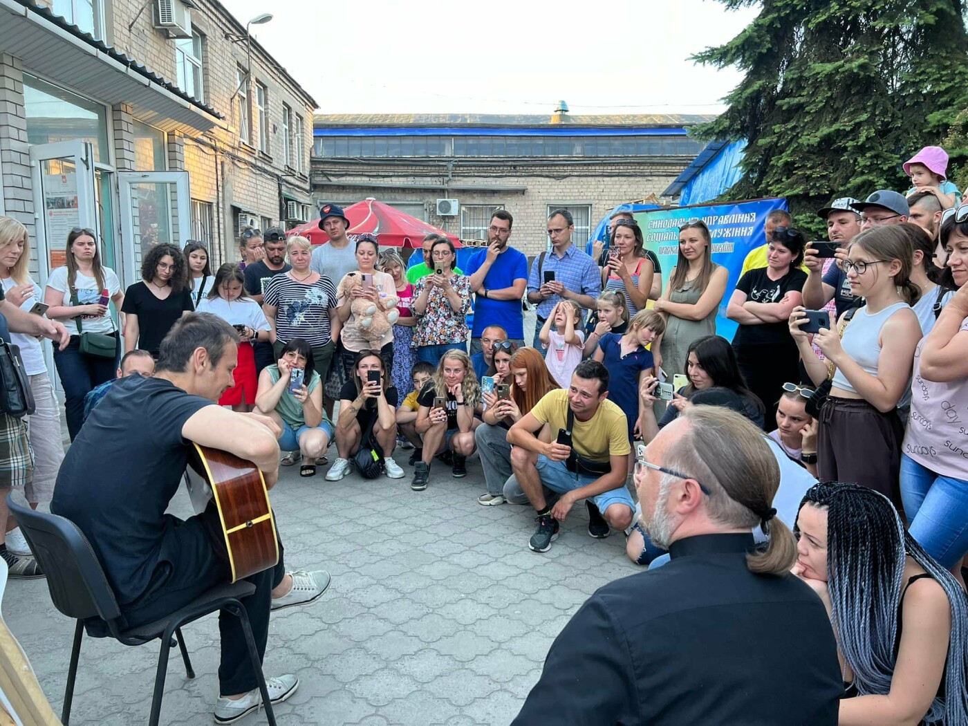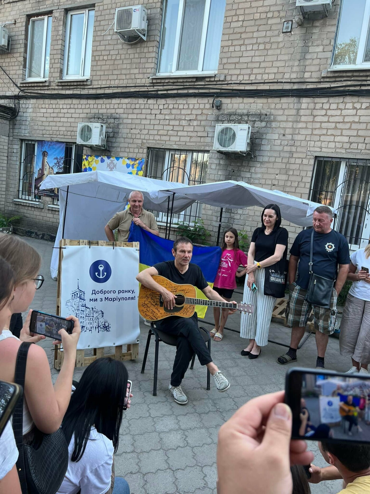Артист за традицією виконав для переселенців та волонтерів свої пісні, серед яких пісня, присвячена подвигу захисників Маріуполя "Місто Марії".