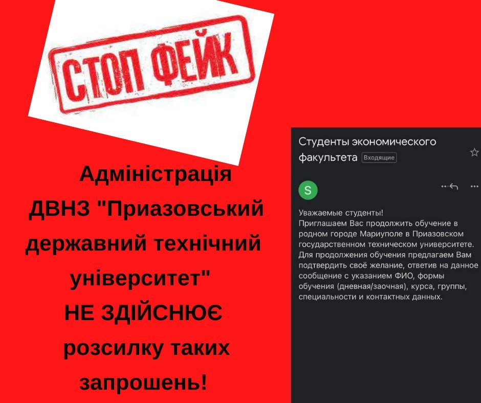 Офіційно заявляємо, що адміністрація університету не має жодного стосунку до нібито відновлення роботи в м. Маріуполь і не здійснює розсилку запрошень студентам", - наголосили у виші.