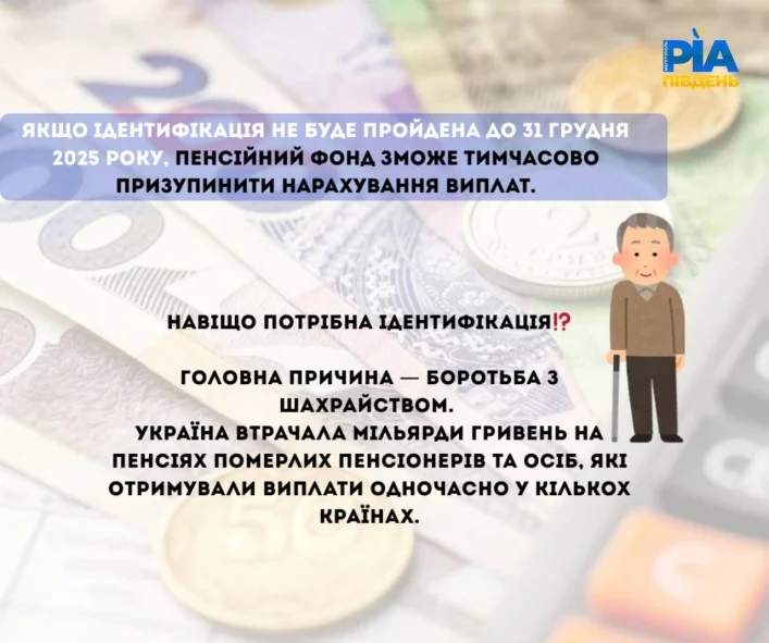 Якщо ідентифікація не буде пройдена до 31 грудня 2025 року, Пенсійний фонд зможе тимчасово призупинити нарахування виплат. Відновлення пенсії можливе, але процес тривалий і складний, вимагає подання нових документів та перевірки їх службою, що може зайняти кілька місяців.