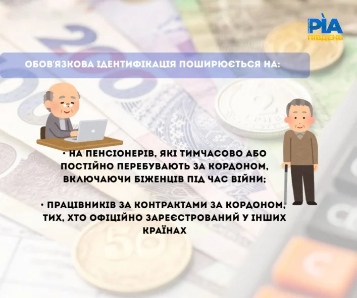 Обов’язкова ідентифікація поширюється на пенсіонерів, які тимчасово або постійно перебувають за кордоном, включаючи біженців під час війни, працівників за контрактами за кордоном і тих, хто офіційно зареєстрований у інших країнах.