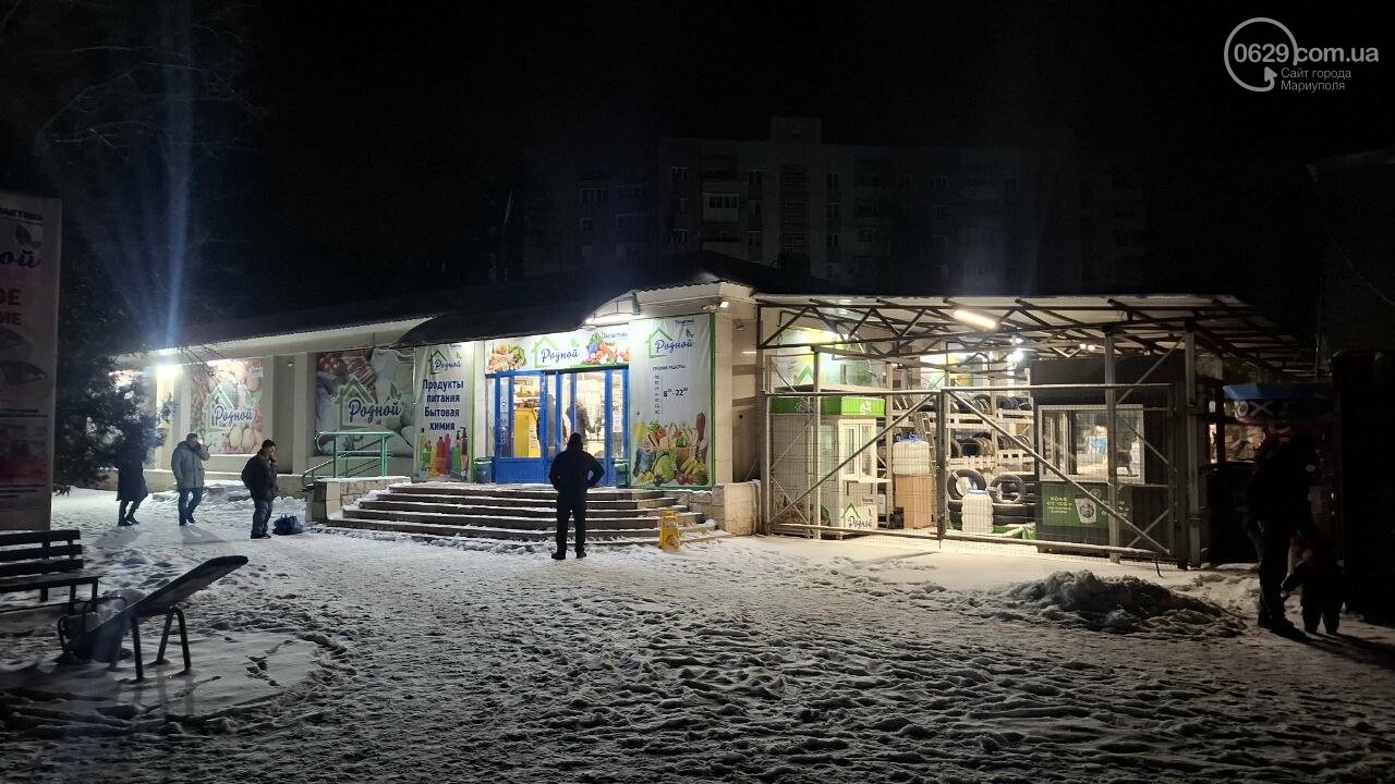 Маріупольці публікують фото повністю знеструмленого міста. На знімках видно лише один працюючий магазин — ймовірно, він підключений до генератора.