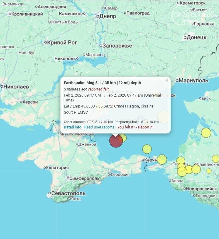Згодом інформацію підтвердили міжнародні сейсмологічні служби. За даними Європейсько-Середземноморського сейсмологічного центру (EMSC), у районі Керченської протоки був зафіксований землетрус магнітудою до 5,1 на глибині близько 35 км.
