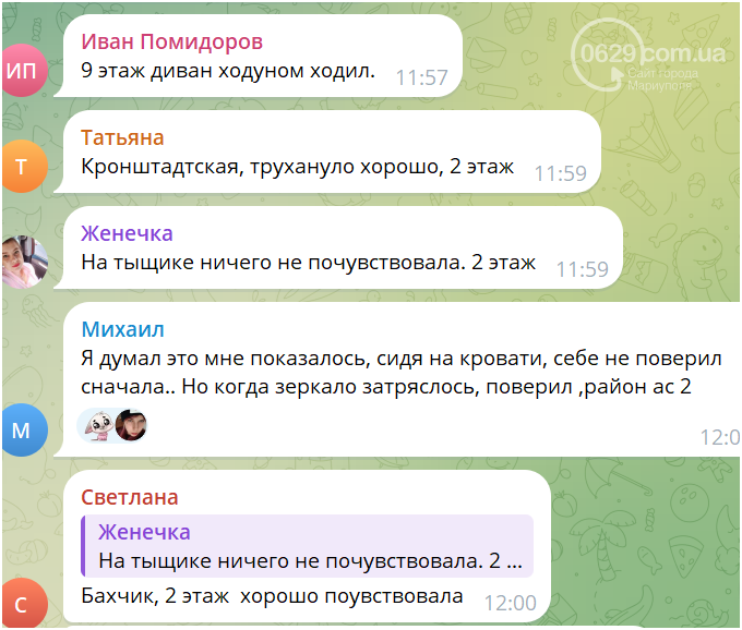 Повідомлення про поштовхи з’являлися також від мешканців Бердянська, Запоріжжя та Донецька.