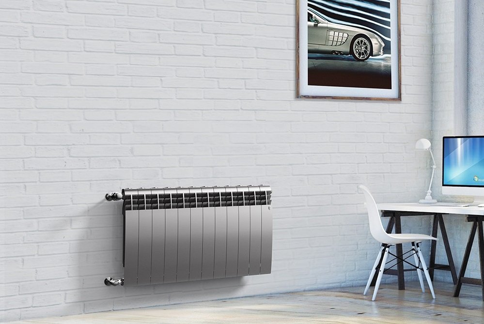 Ще одним доволі надійним варіантом вважається радіатор біметалевий. Це той тип опалювального обладнання, який гармонійно поєднує в собі основні плюси сталі та алюмінію. Біметалеві радіатори опалення чудово підходять для централізованих систем опалення у багатоповерхових будинках. Якщо детальніше говорити про характерні їм переваги, слід відзначити наступні: