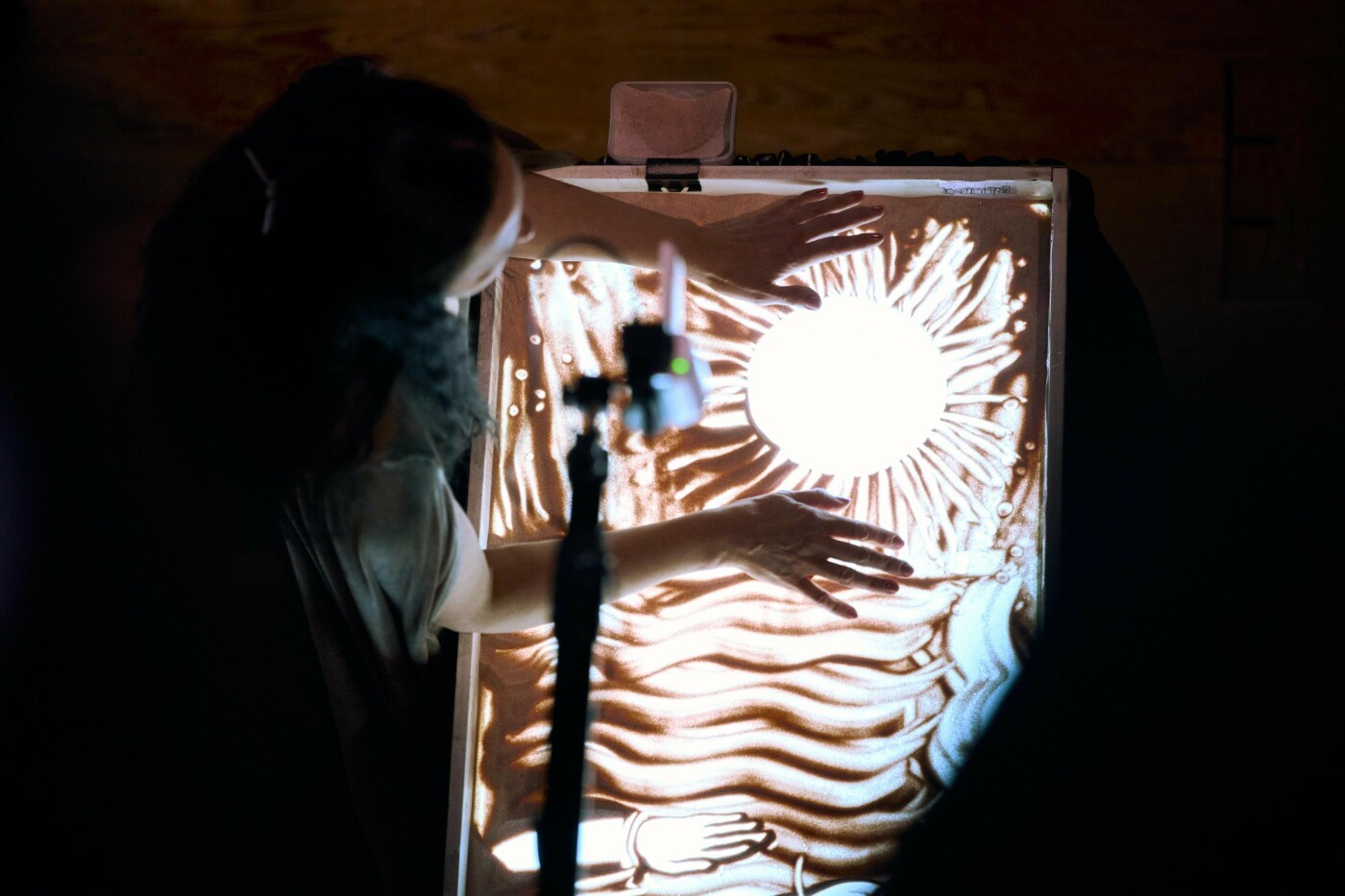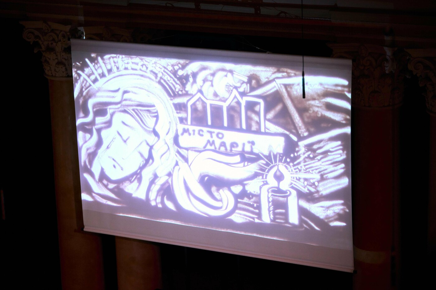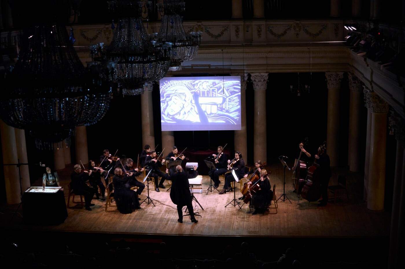 Під час вистави майстриня анімаційних мистецтв Оксана Мергут створювала образи з пісочної анімації, які народжувалися та змінювалися у живому ритмі музики.