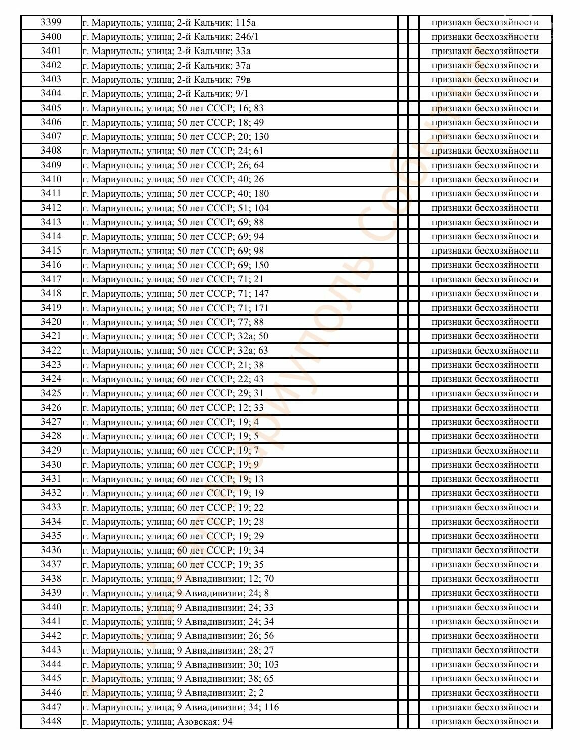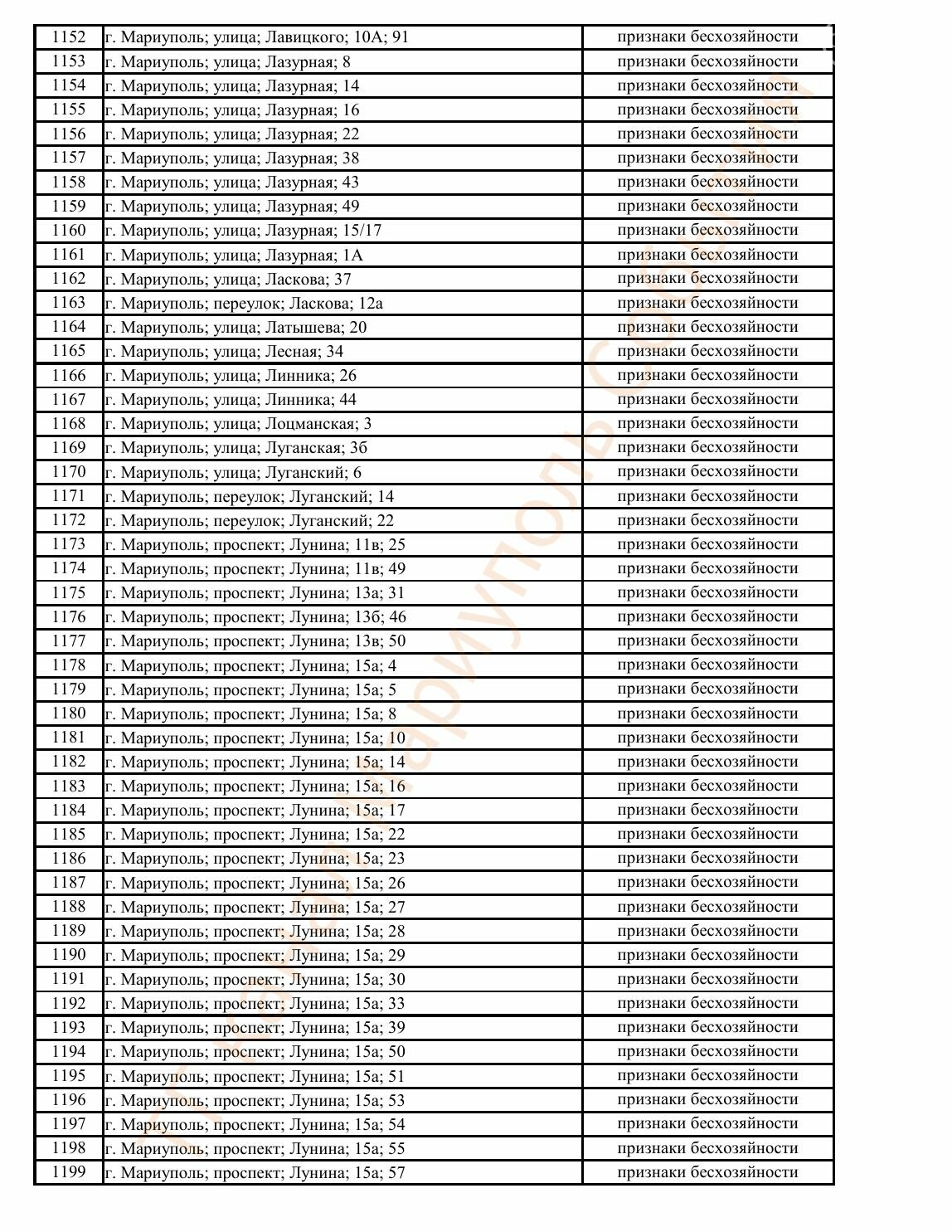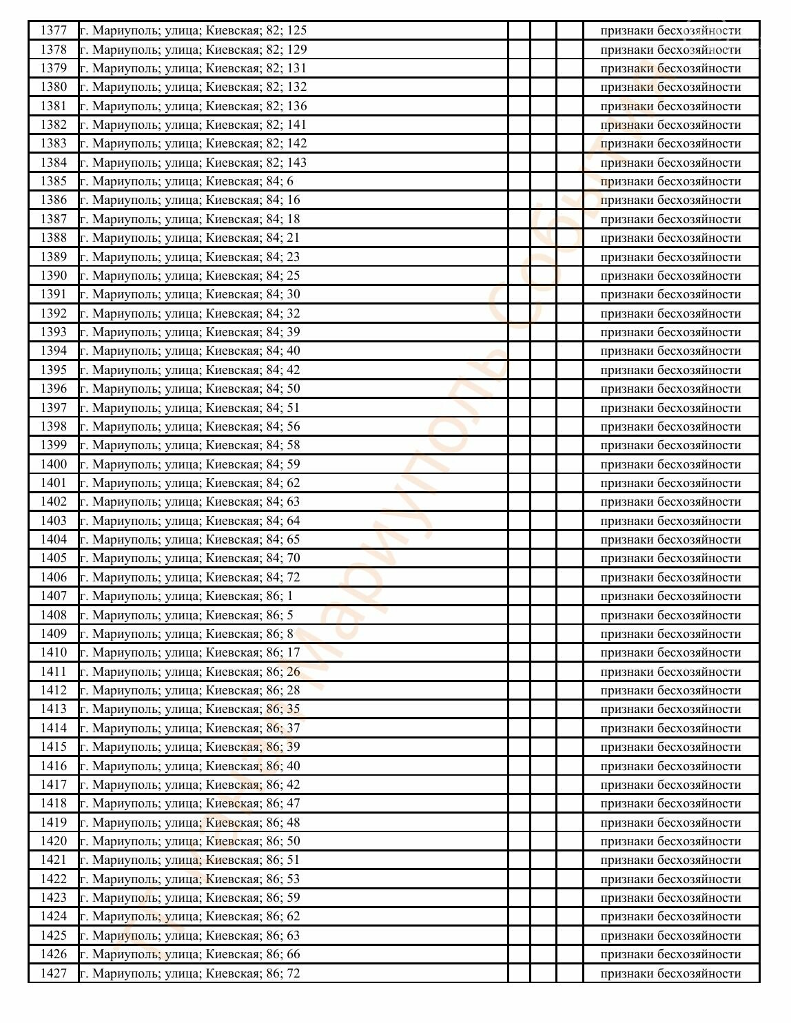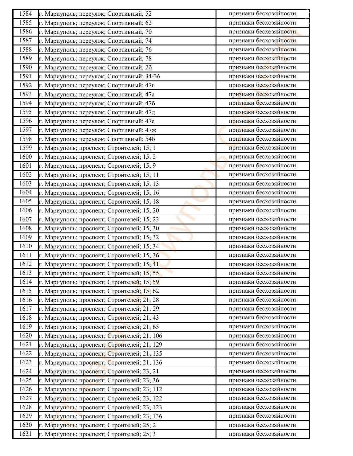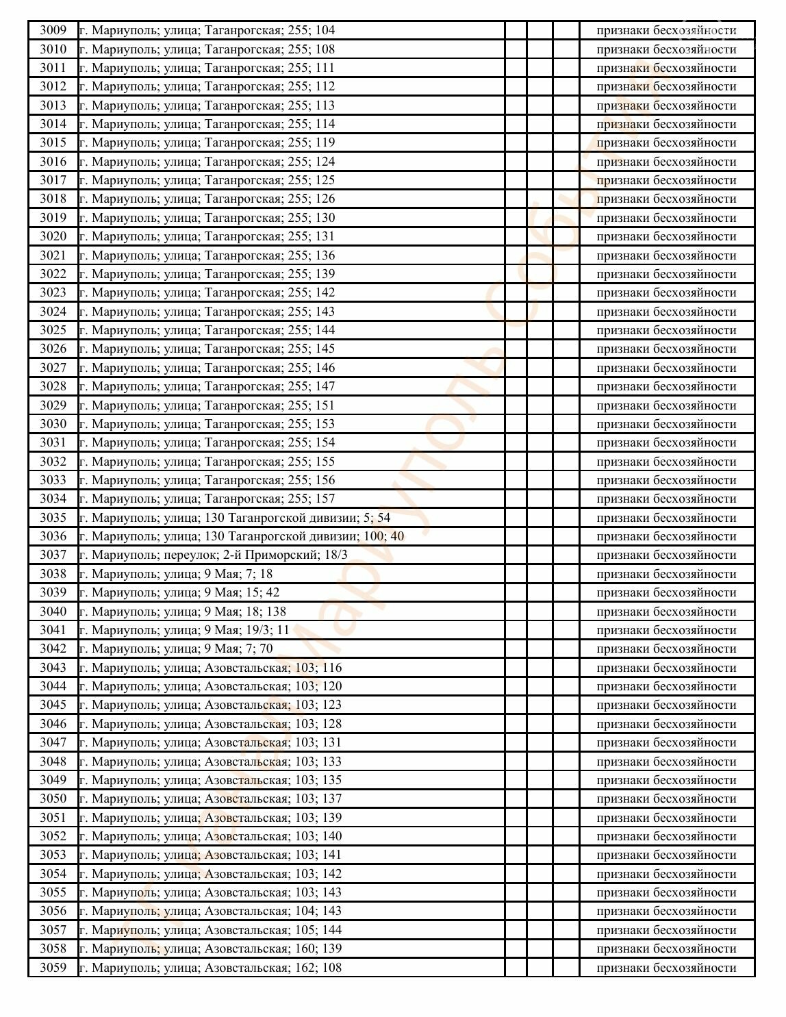 Окупаційна адміністрація Маріуполя оприлюднила черговий перелік нерухомості, яку визнали такою, що «має ознаки безхазяйності». У списку — близько 13 тисяч об’єктів, переважно квартир та житлових приміщень.
