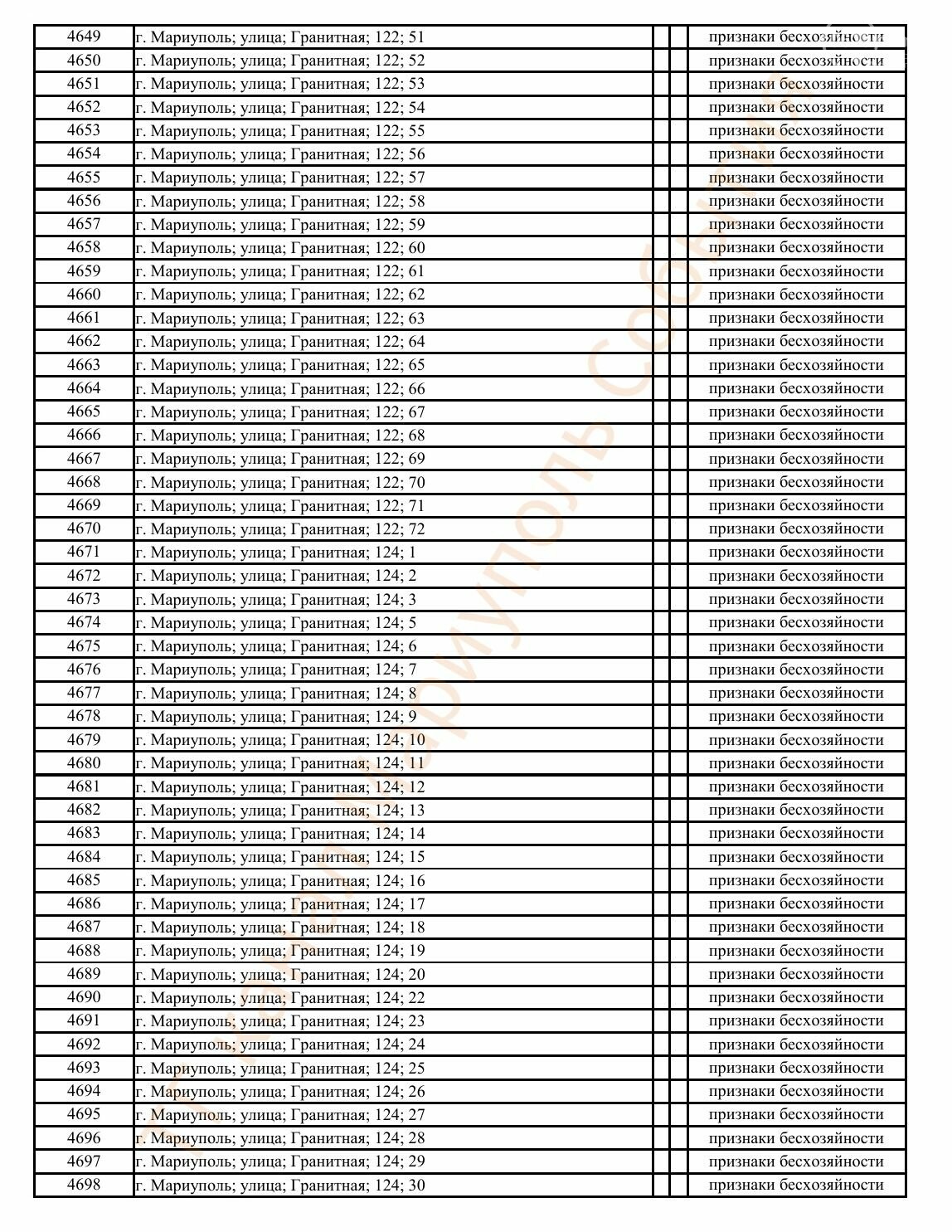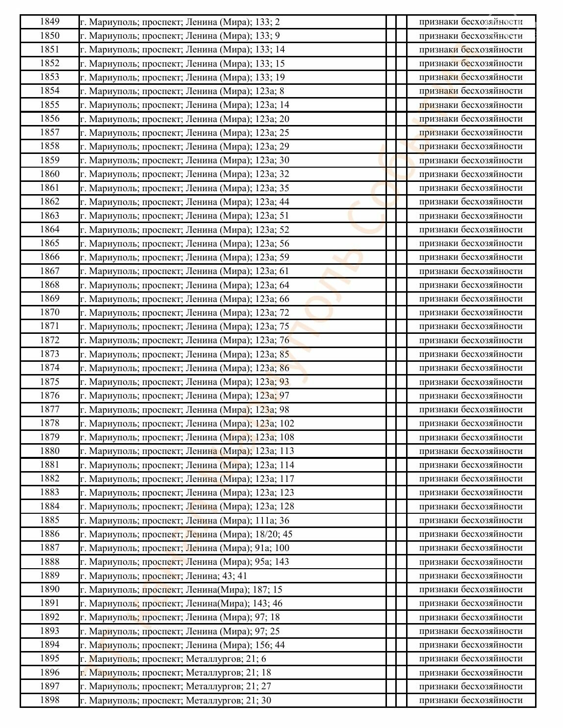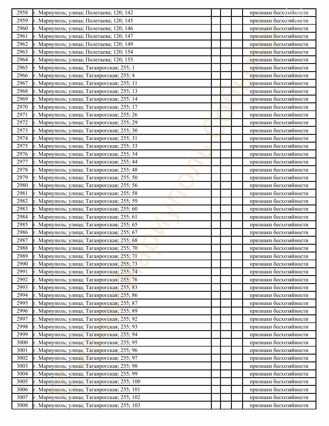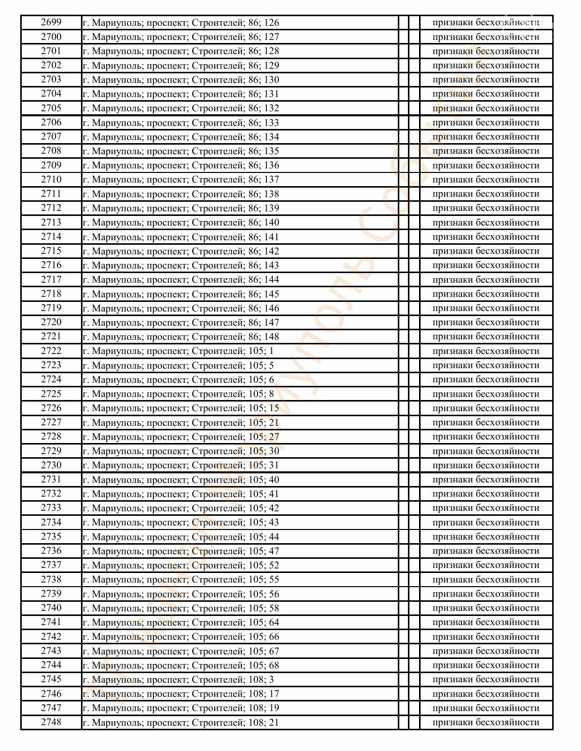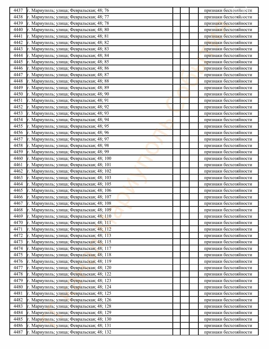 Окупаційна адміністрація Маріуполя оприлюднила черговий перелік нерухомості, яку визнали такою, що «має ознаки безхазяйності». У списку — близько 13 тисяч об’єктів, переважно квартир та житлових приміщень.