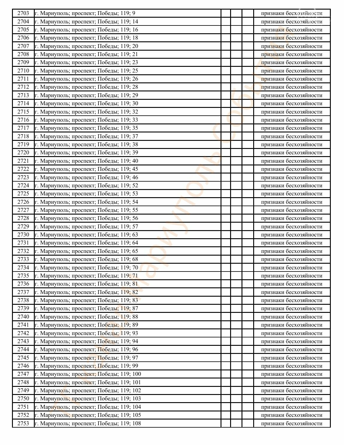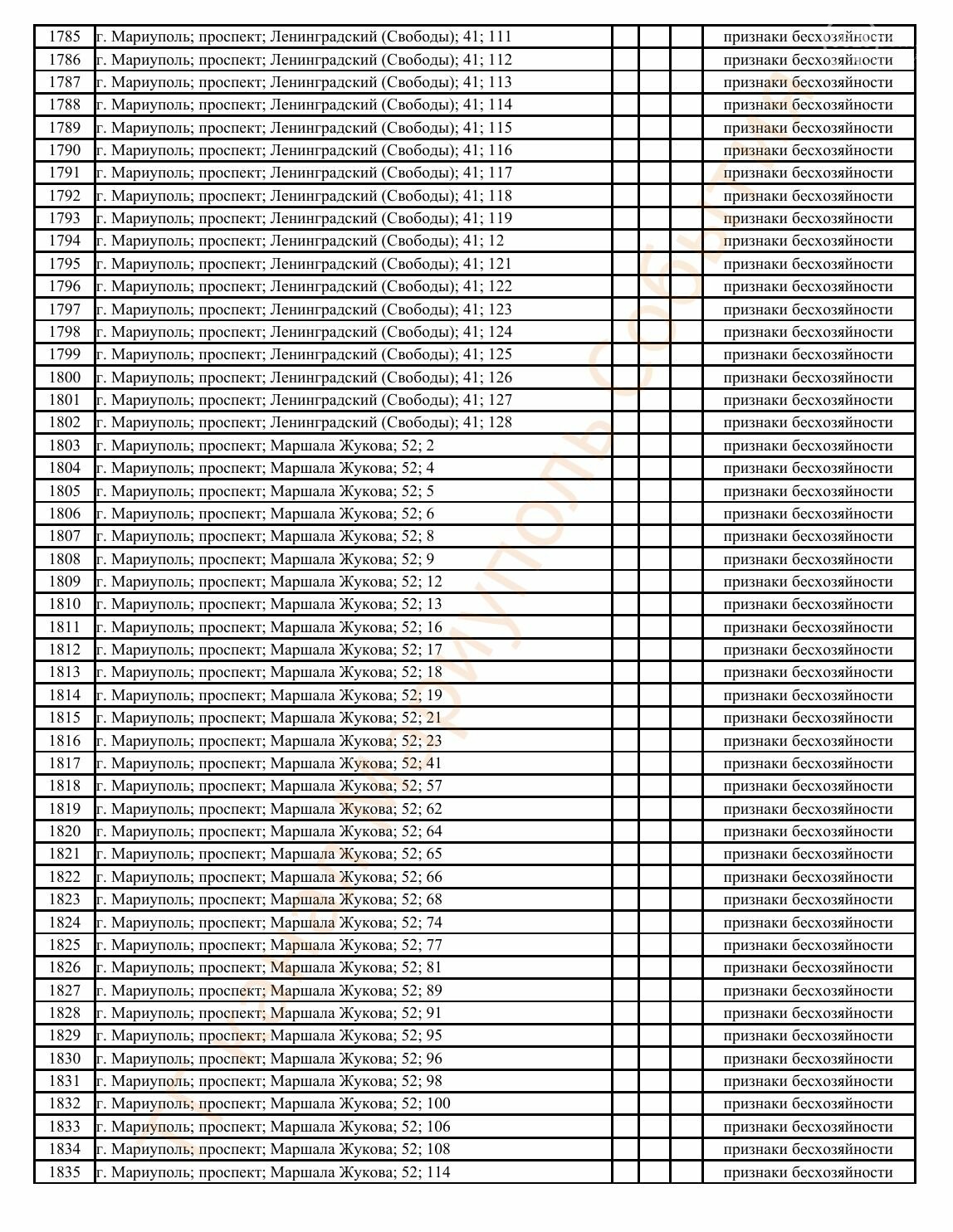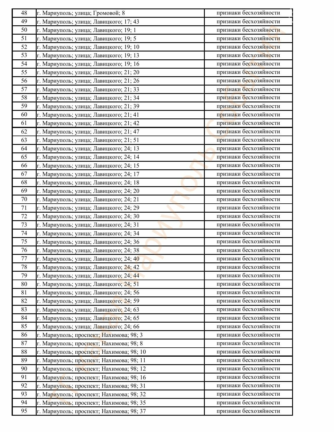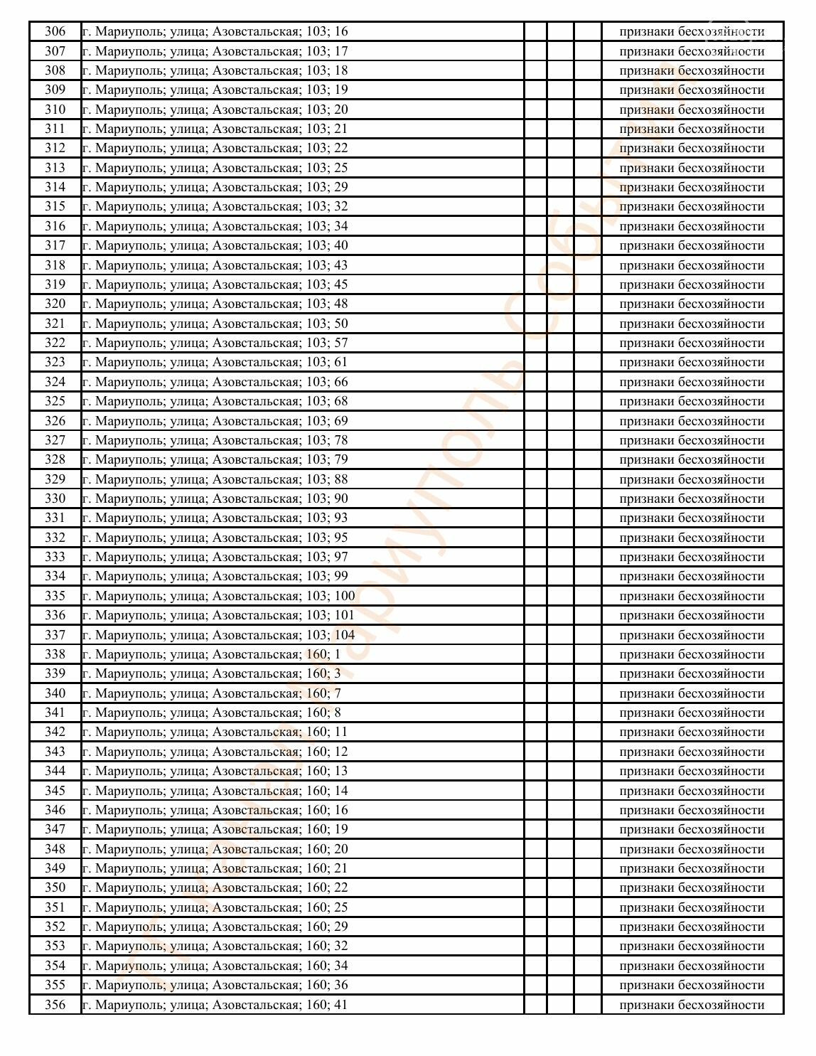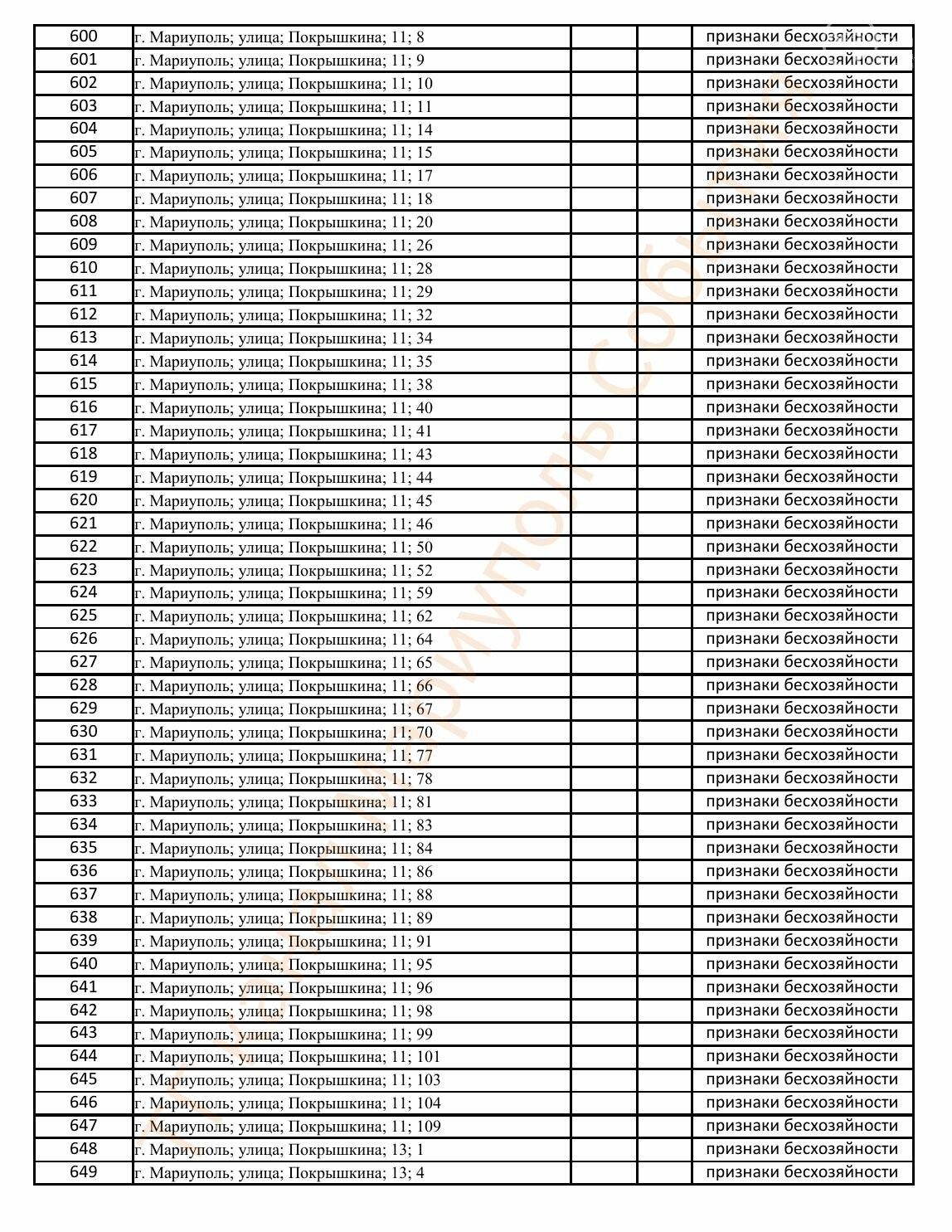 Окупаційна адміністрація Маріуполя оприлюднила черговий перелік нерухомості, яку визнали такою, що «має ознаки безхазяйності». У списку — близько 13 тисяч об’єктів, переважно квартир та житлових приміщень.